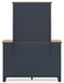 | Details | B414B2: Includes panel headboard, footboard, rails and slats, Made with hardwood solids, mindi wood veneer and MDF substrates, Two-tone finish features a dark slate blue with a light brown wood-tone top, Foundation/box spring required, sold separately, Mattress available, sold separately, Assembly required, B414B1: Includes dresser and mirror, Made with hardwood solids, mindi wood veneer and MDF substrates, Two-tone finish features a dark slate blue with light brown wood-tone top, Nickel-tone metal knobs, 6 drawers with fully finished interior, dovetail construction and heavy duty ball-bearing side glides, Mirror attaches to back of dresser, B414-92: Made with hardwood solids, mindi wood veneer and MDF substrates, Two-tone finish features a dark slate blue with a light brown wood-tone top, Nickel-tone metal knobs, 2 drawers with fully finished interior, dovetail construction and heavy duty ball-bearing side glides, | |