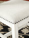 | Details | Made of solid wood, Distressed vintage white finish with linen colored polyester upholstery, Nailhead trim, Cushioned seat, Assembly required | |