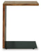 Sleek form, superior function. The C-shaped design of this accent table lends a clean-lined, contemporary feel while providing handy versatility. The table slides over an ottoman or cushion, providing an instant surface for movie night snacks and beverages. Sofa-side convenience has never been so stylish.